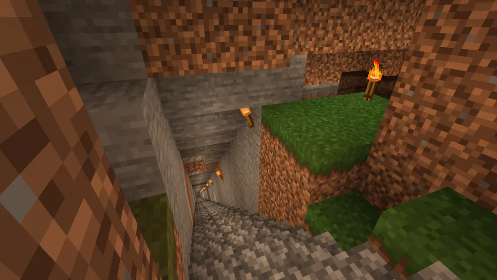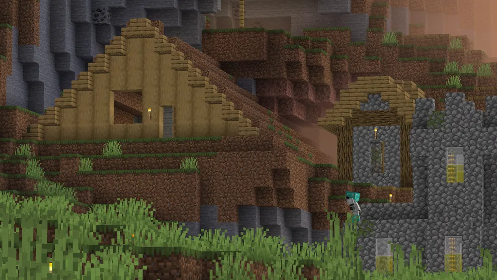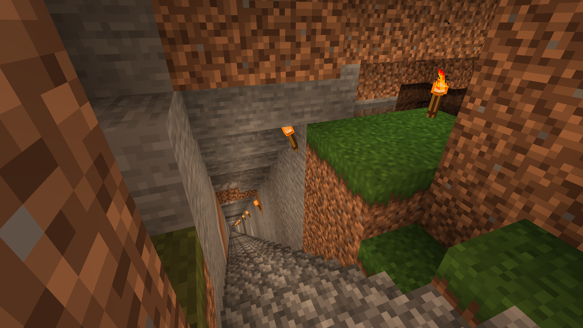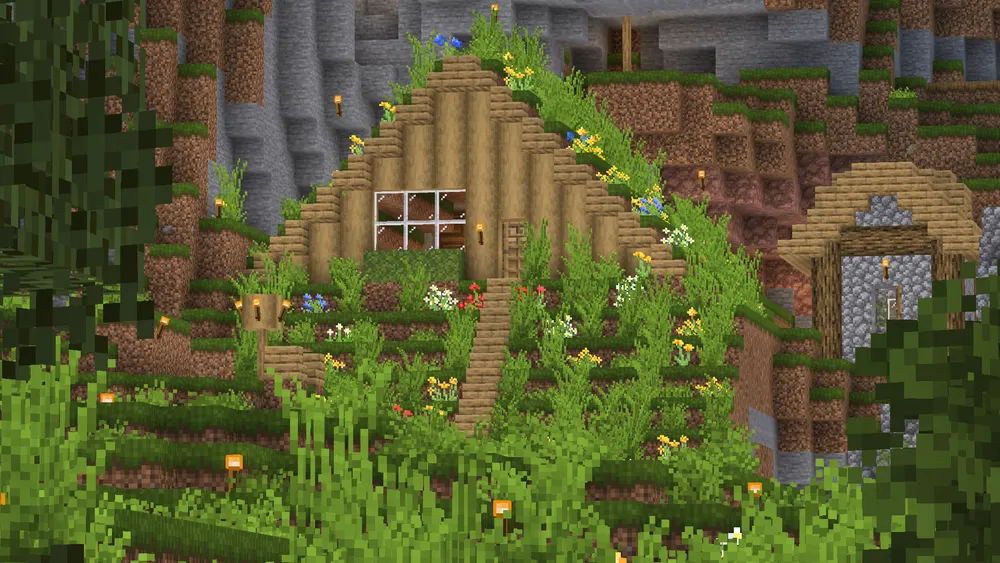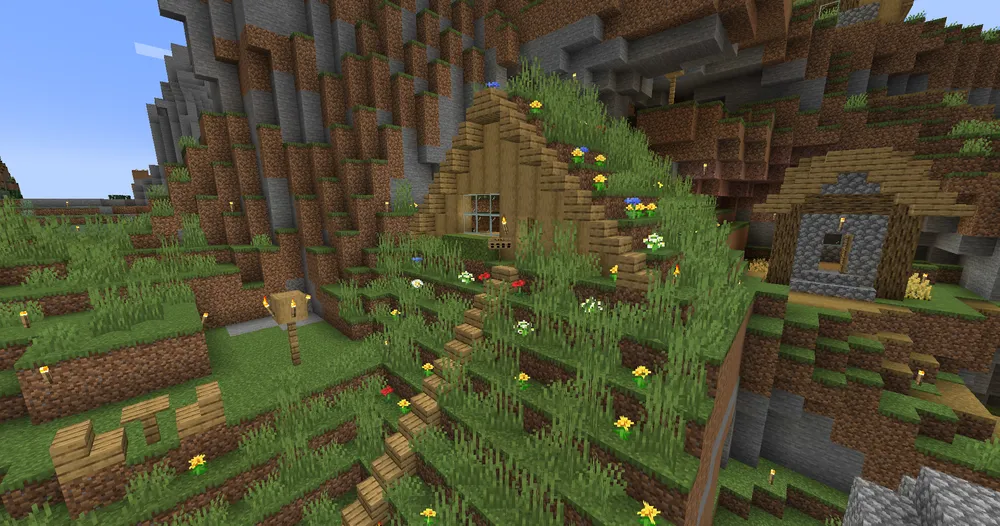 We threw together a small communal birch house with some basic food sources and a rudimentary mine stemming from the cave system below.
