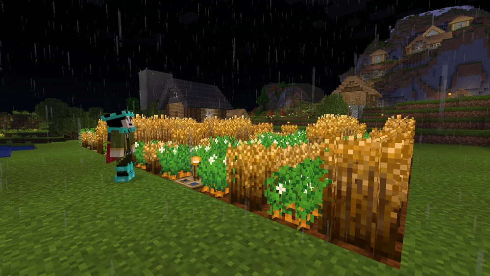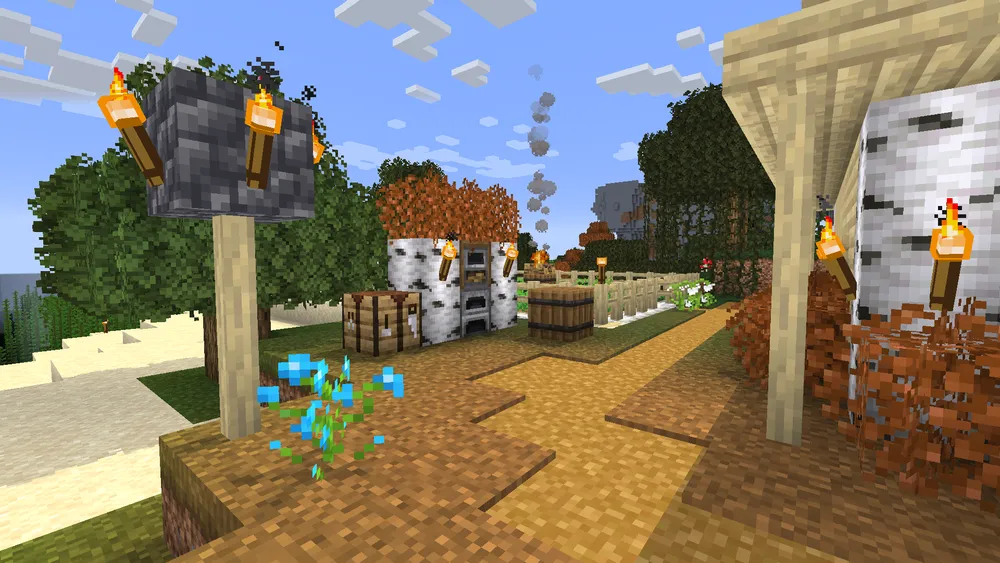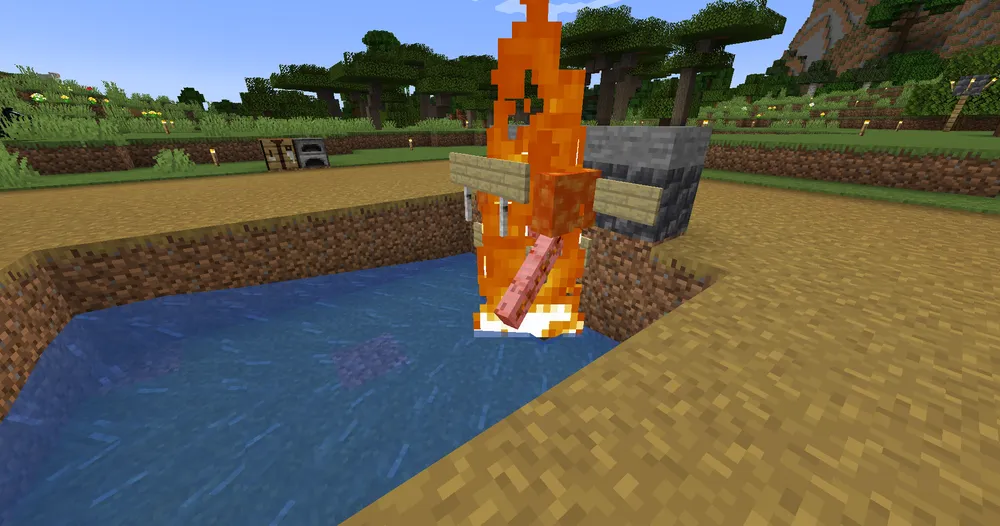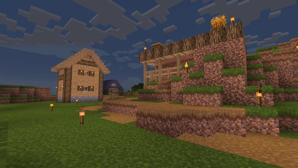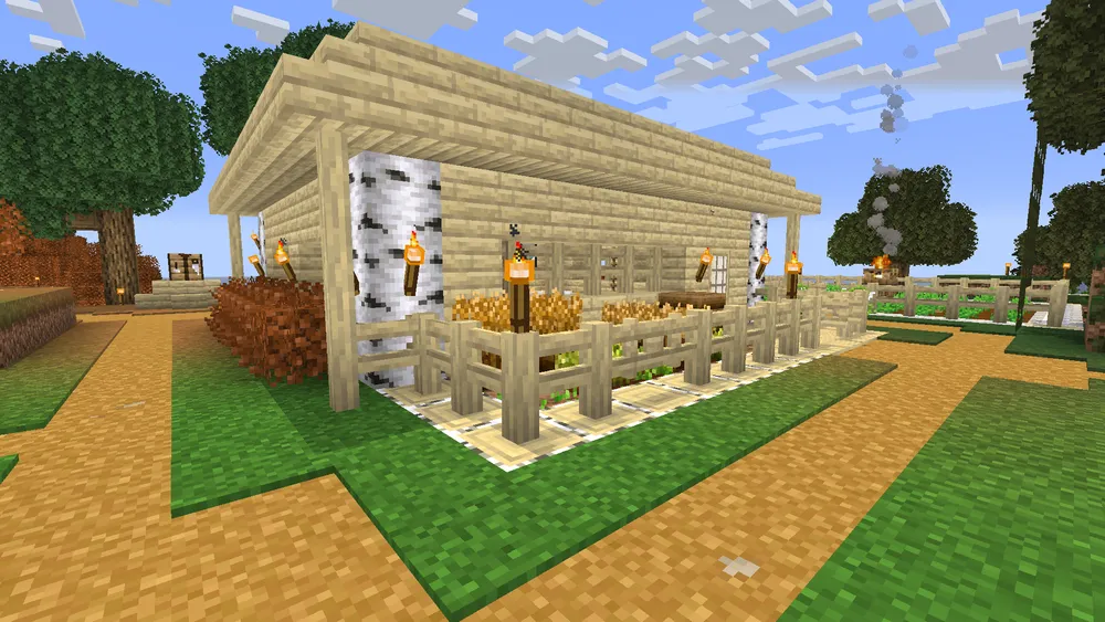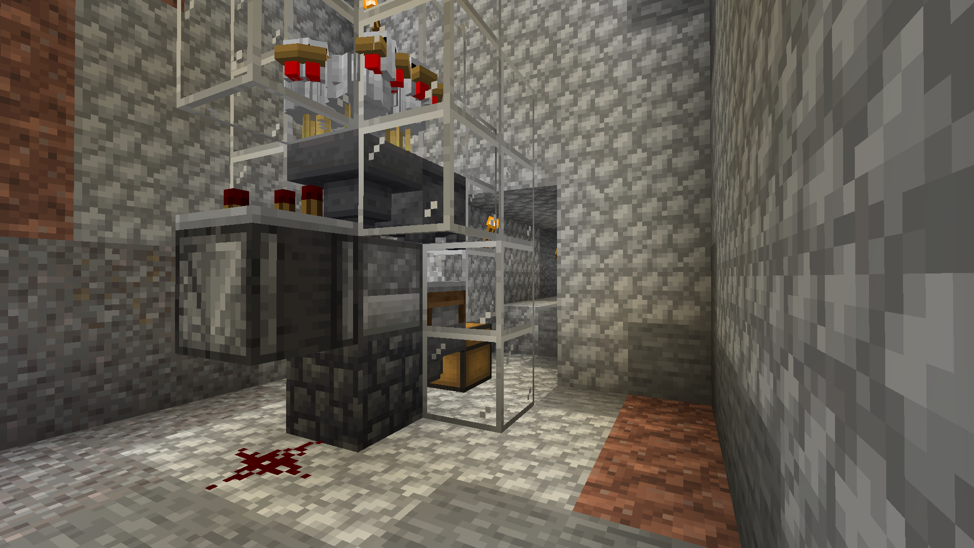 The chicken pen soon turned into an automatic grinder as a faster source of food and arrow fletchings, and a cactus composter was built in the nearby field to support farming.