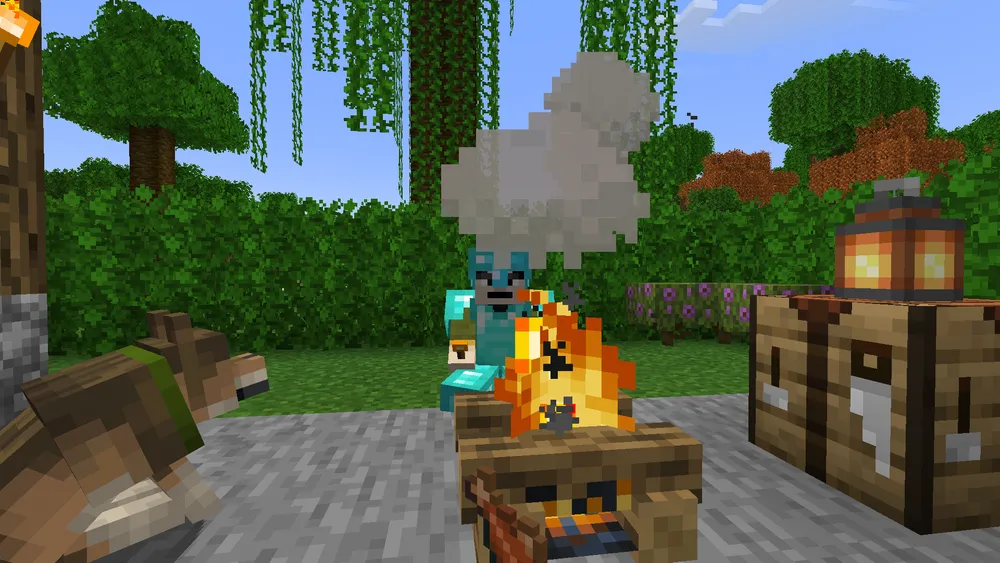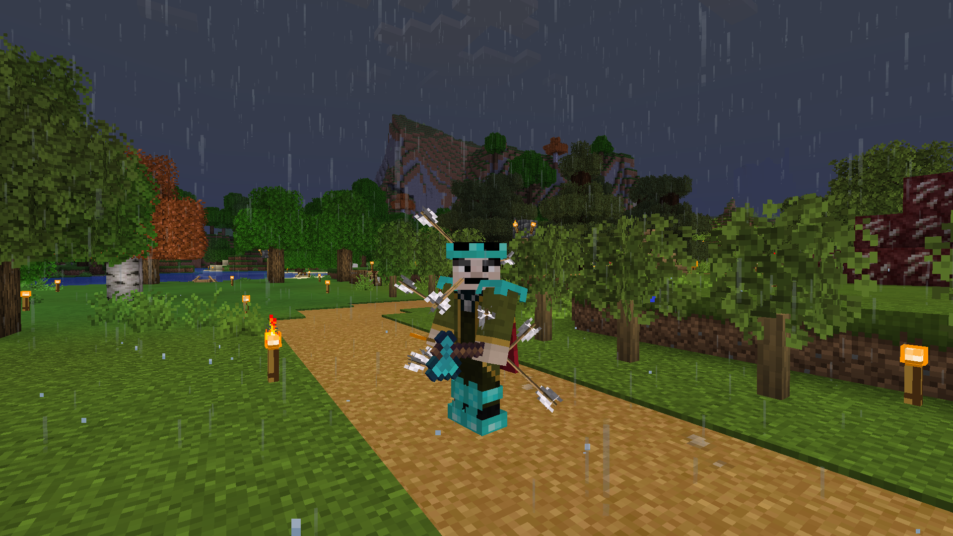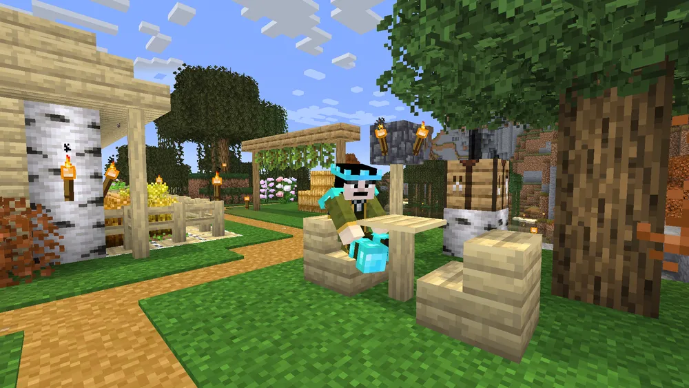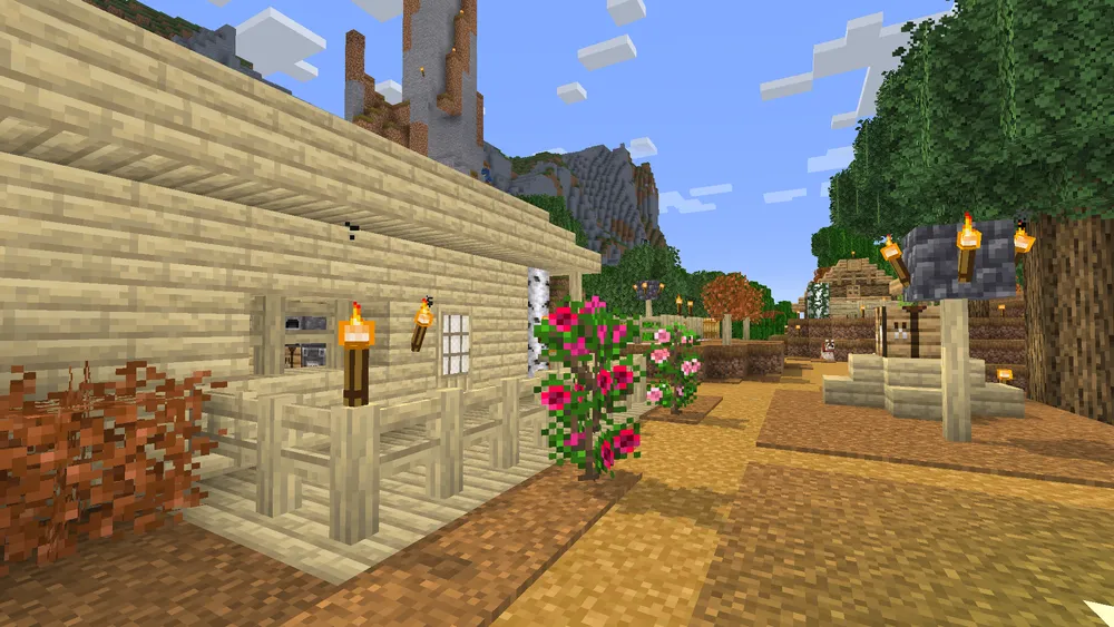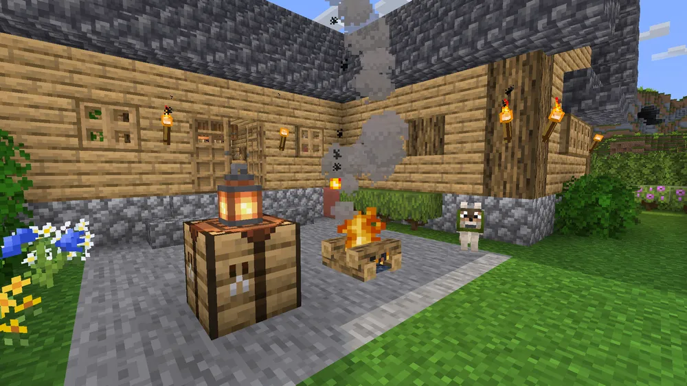 The chicken pen soon turned into an automatic grinder as a faster source of food and arrow fletchings, and a cactus composter was built in the nearby field to support farming.