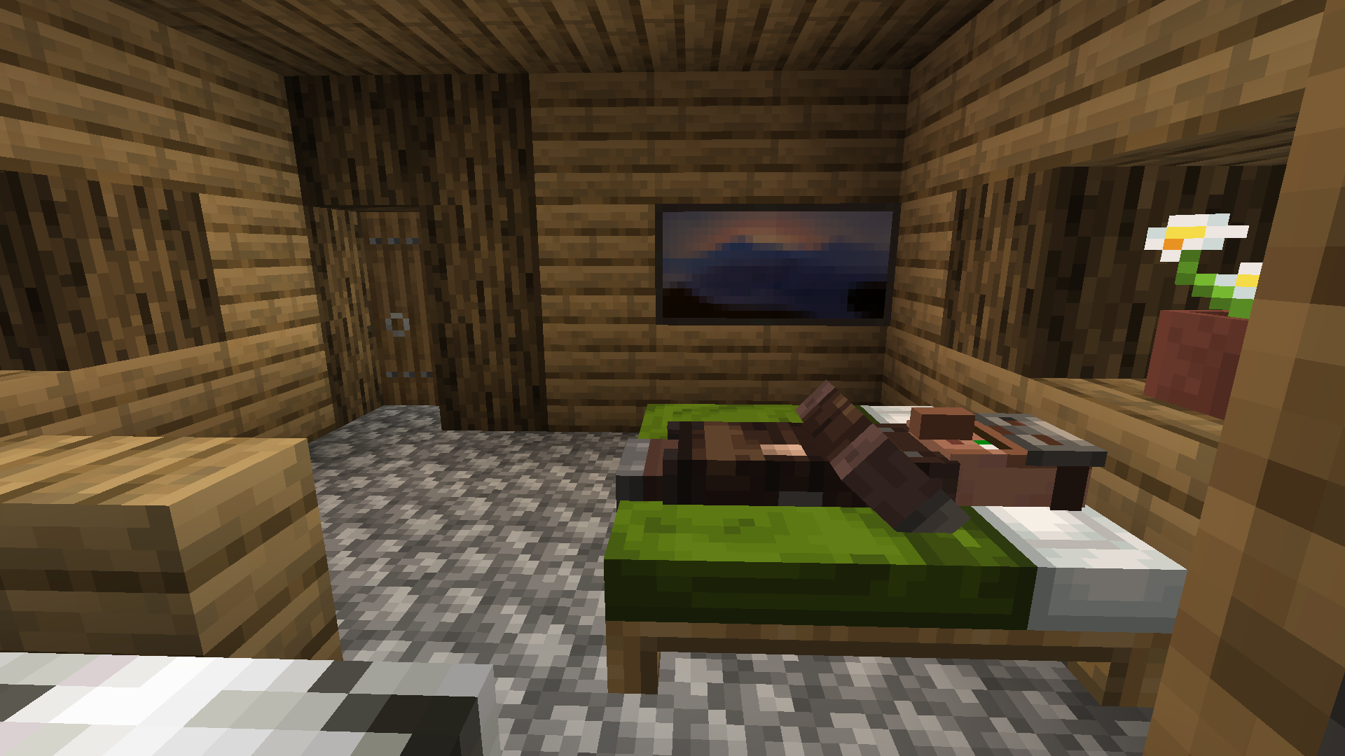 The village farmers provided enough emeralds to trade with a few wandering merchants for some useful resources. However, the entire village was eventually wiped out by a zombies, leaving us without a ready source of emeralds.