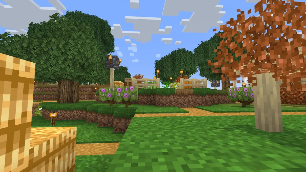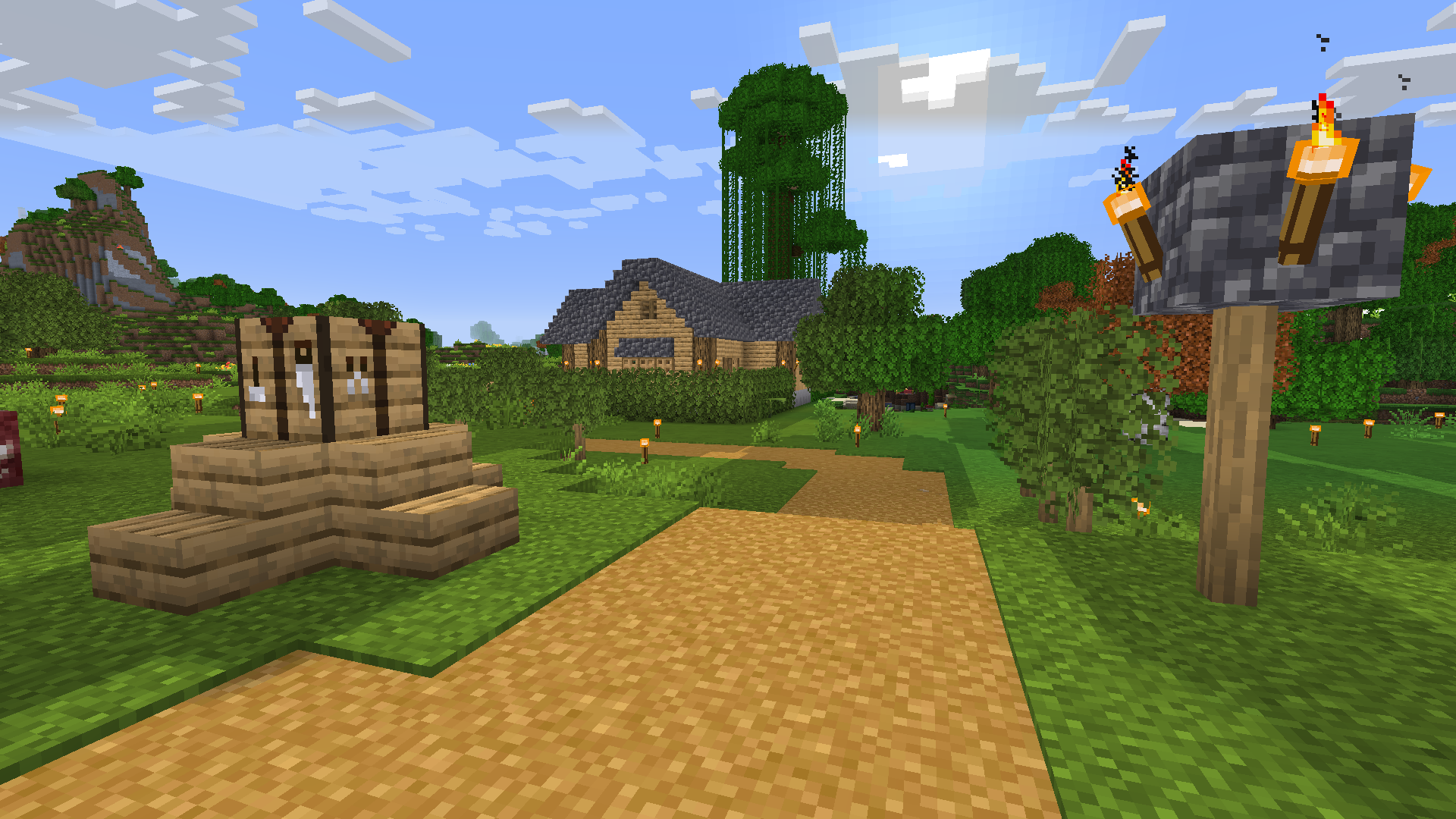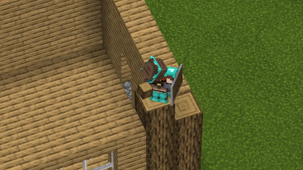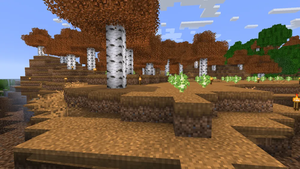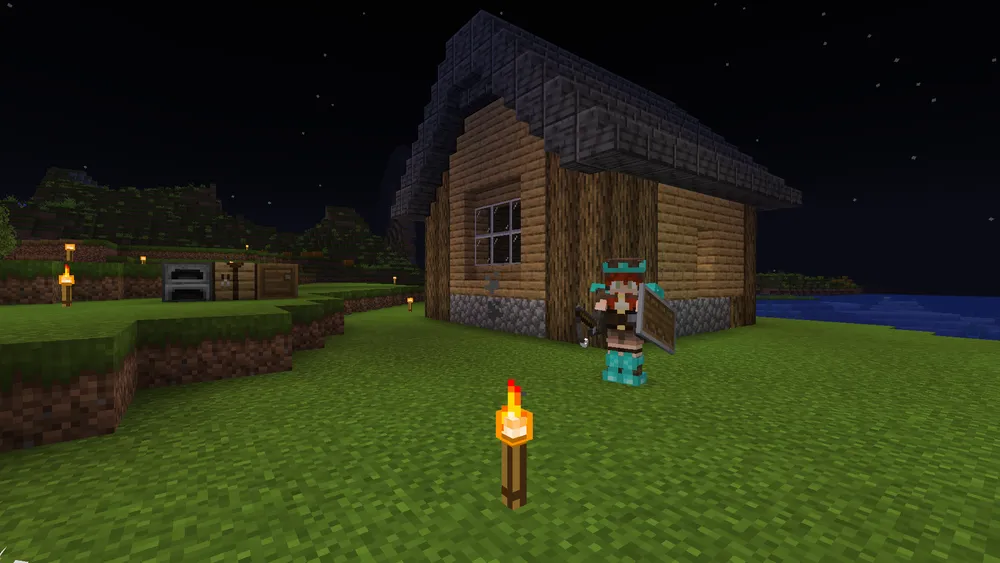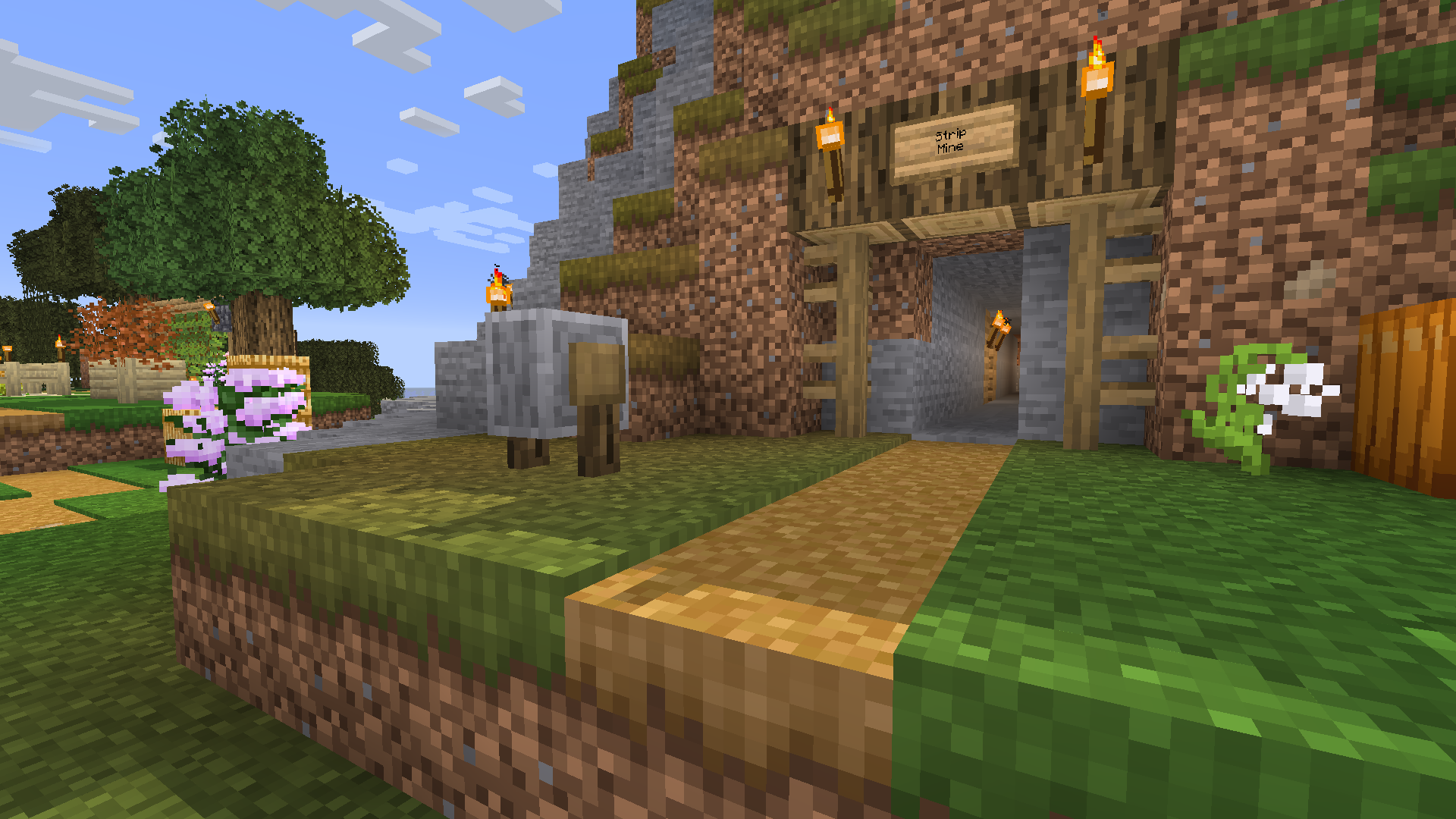 We landed at a typical birch forest and quickly gathered materials for a communal house to settle the immediate area. Early food sources were kelp and potatoes obtained from a nearby village. Besides the ocean and a couple of mountains, surrounding biomes were little more than woods and plains. We started building close to the shore near the landing site.