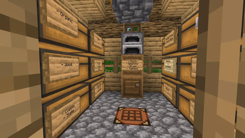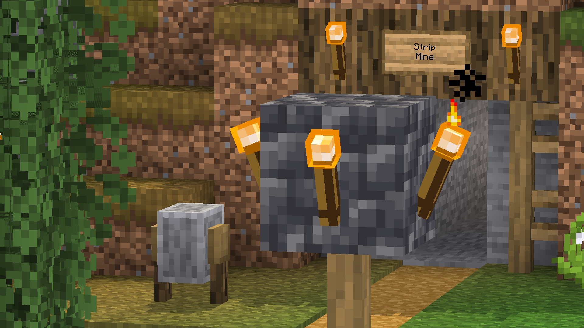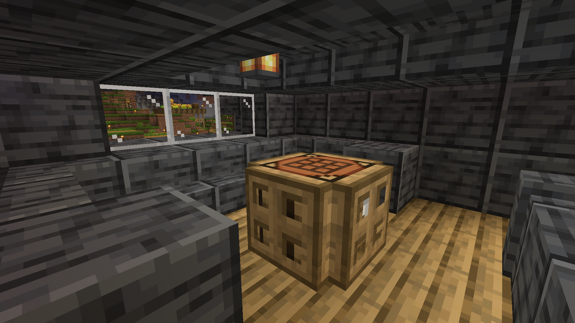 As our house began to fill with junk we created a storage shed for organizing materials, a small stable for breeding animals, and an enchanting table supplied with book-making leather from the animals. We also began a dedicated strip-mining shaft near the house.