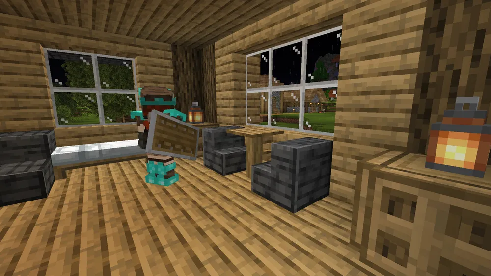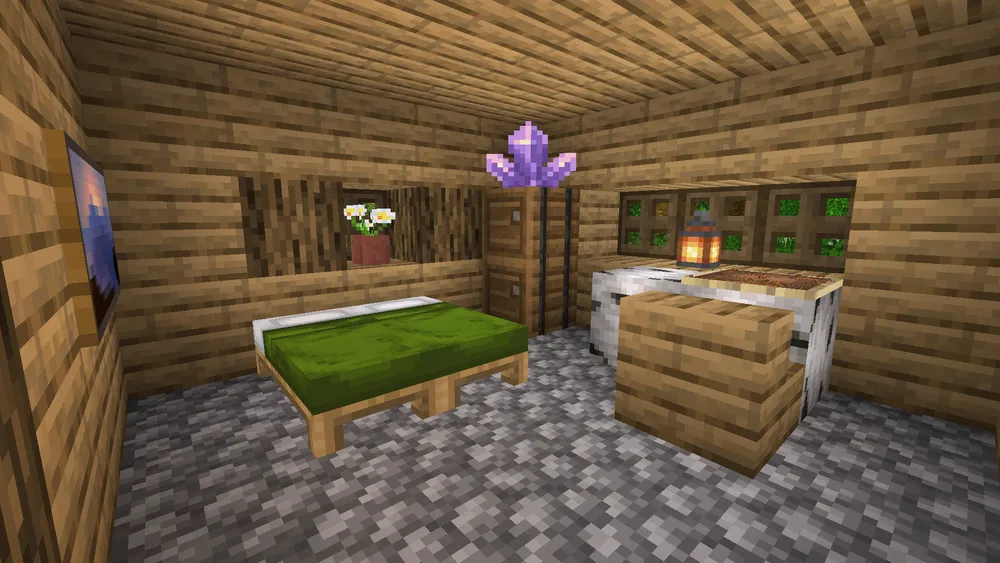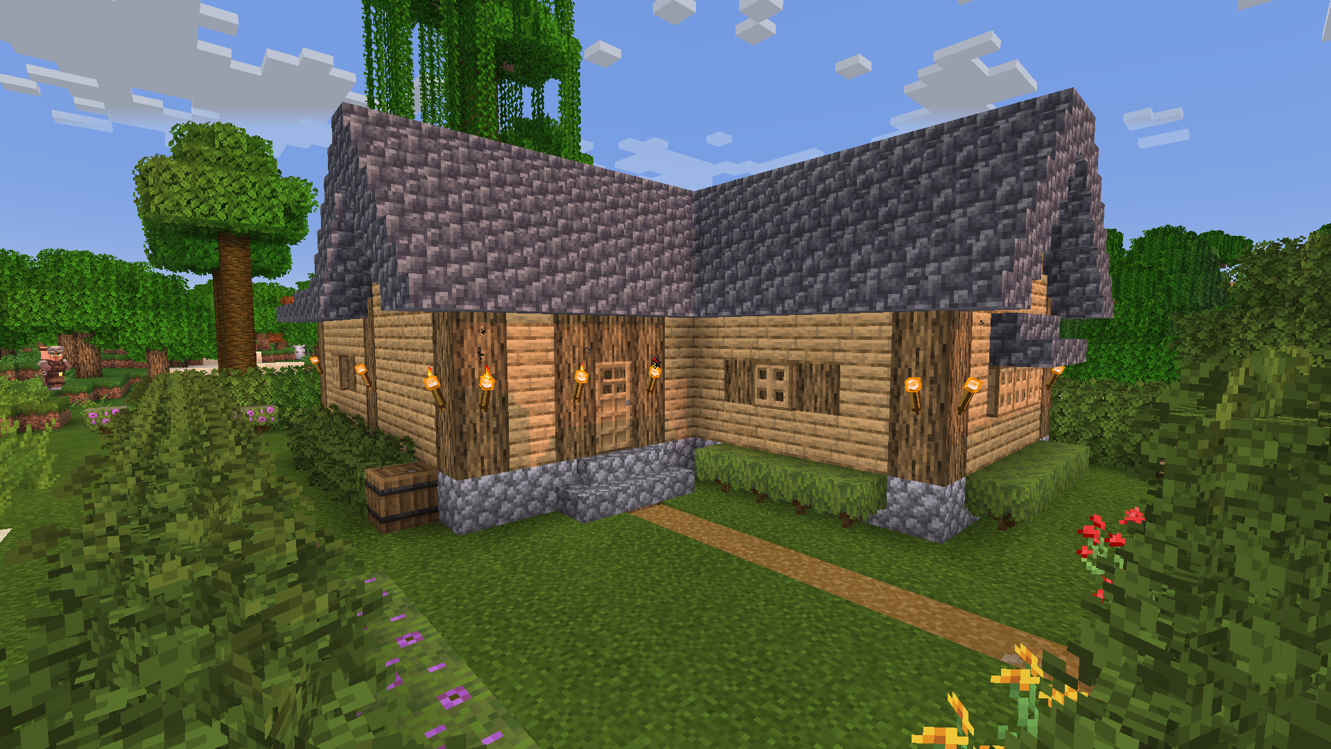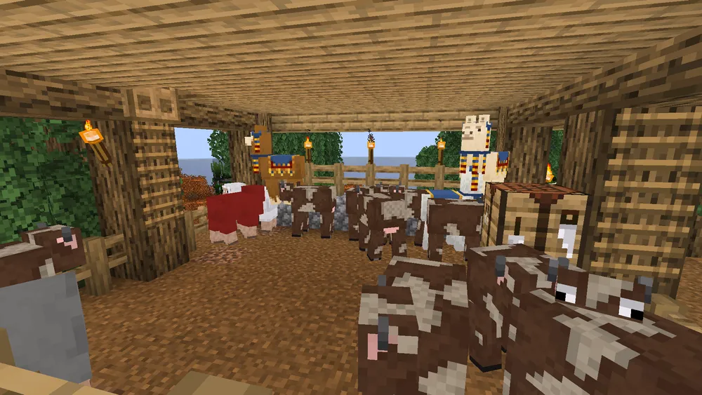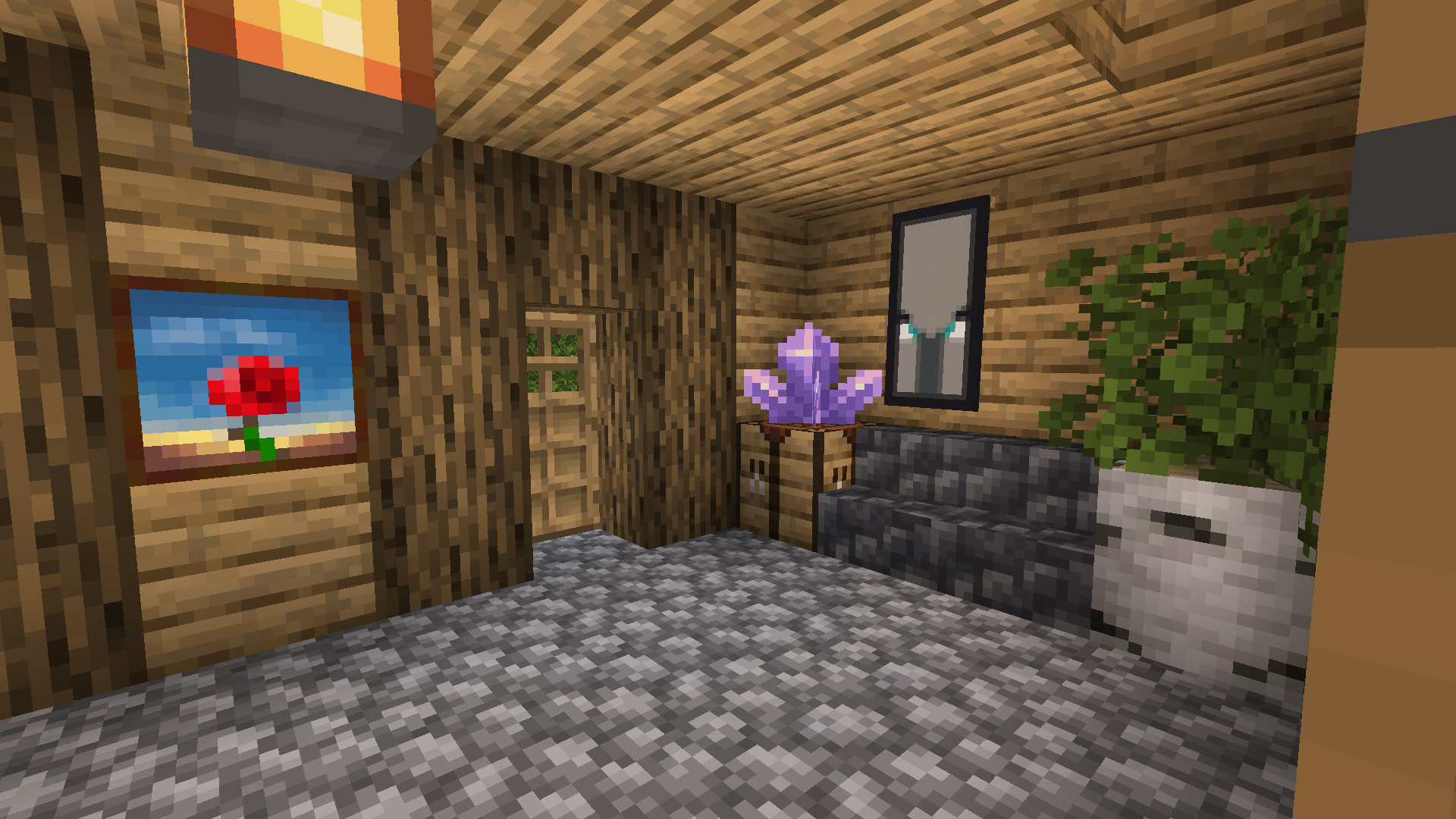 As our house began to fill with junk we created a storage shed for organizing materials, a small stable for breeding animals, and an enchanting table supplied with book-making leather from the animals. We also began a dedicated strip-mining shaft near the house.