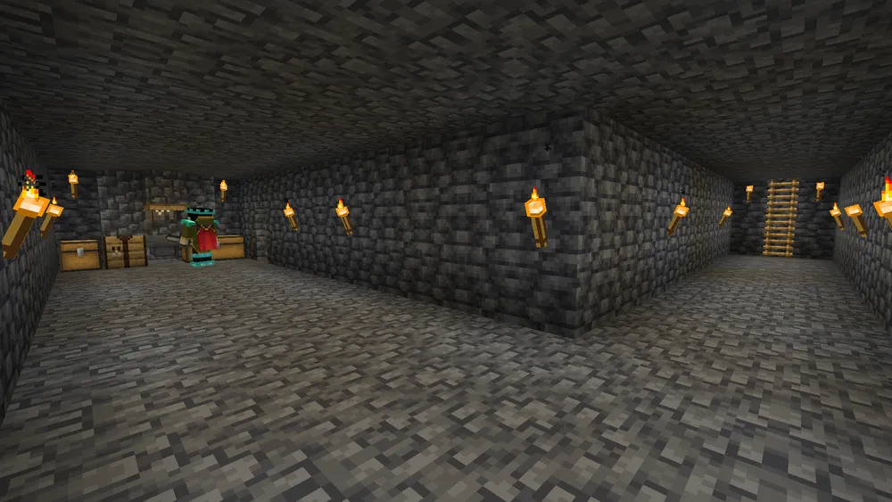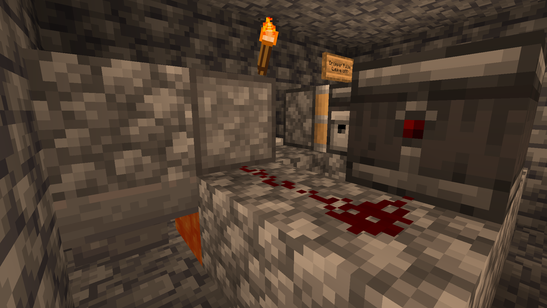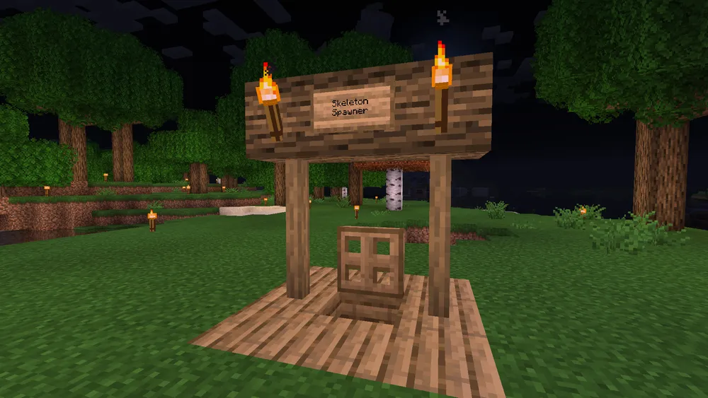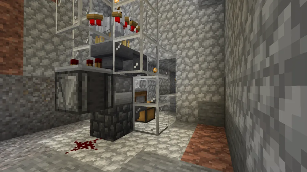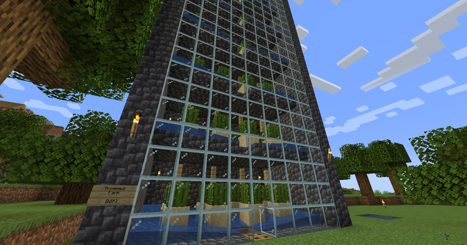 A skeleton spawner was discovered via strip mine and turned into an xp farm, largely eliminating the need for the aforementioned grinders. A golem grinder was also created using captured villagers for sustained iron production.
