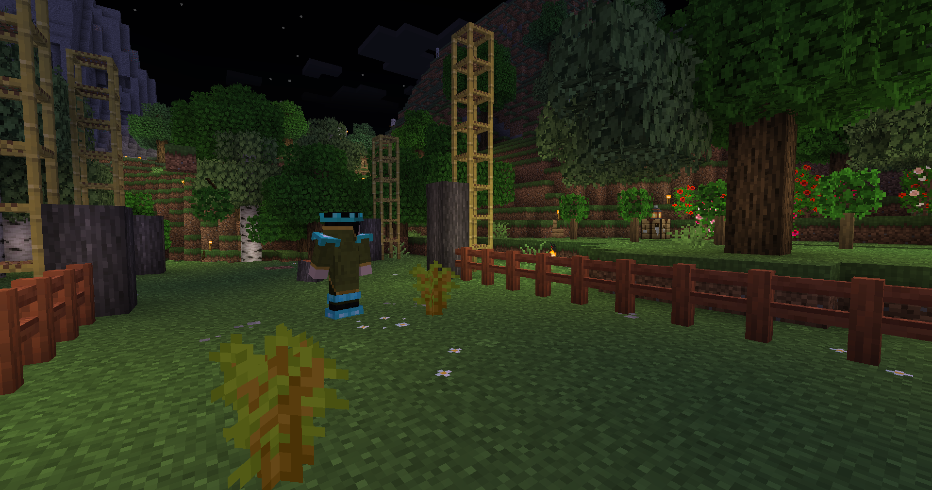 The homestead punctuates the crossroads between the landing settlement and town to the bay island. Other proposed plans for this area include an armadillo-powered silverfish farm and a swamp slime ranch.