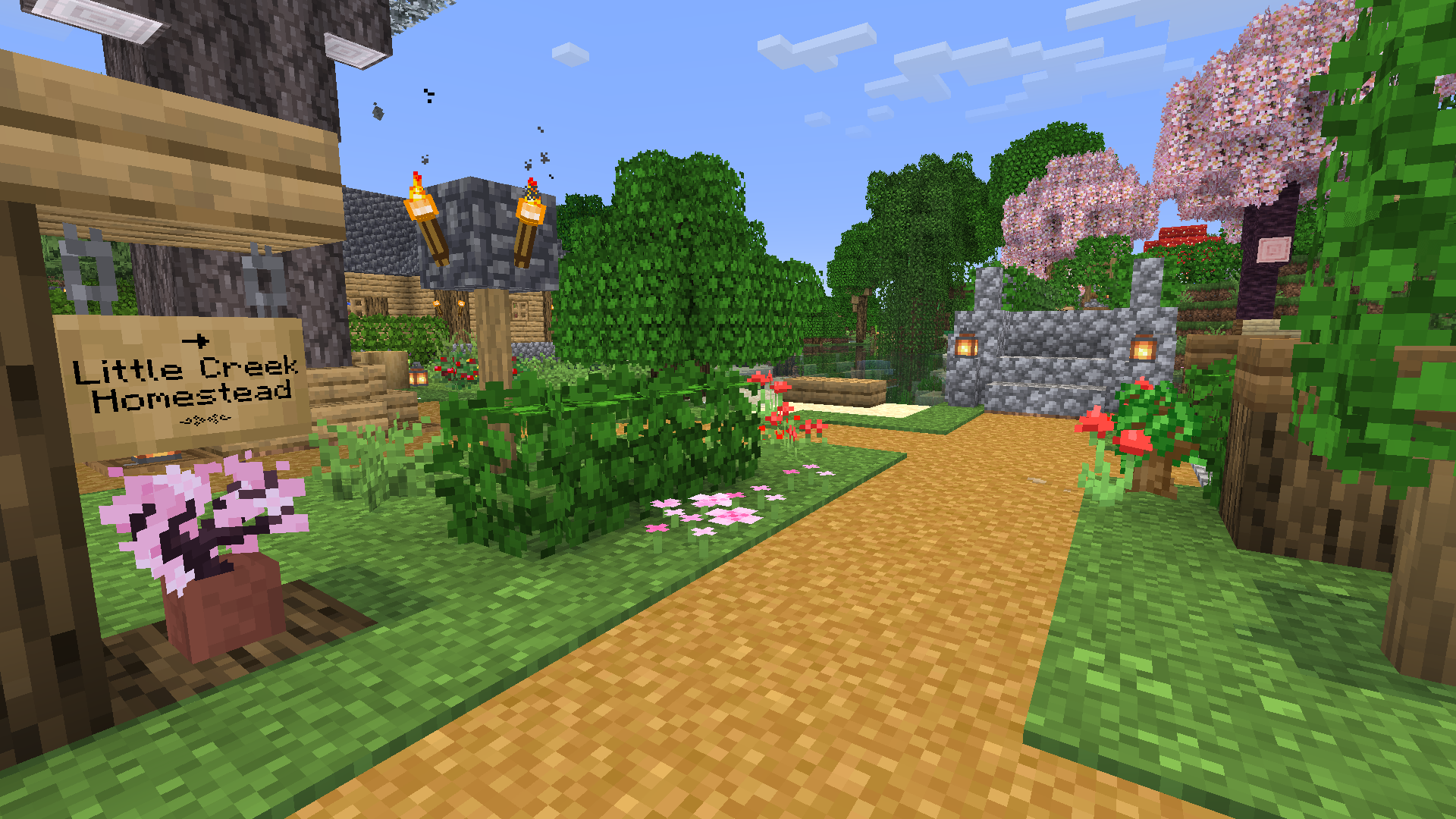 A small garden park was started near Little Creek with an access bridge from the island. A small canal was also dredged around the park to allow boat travel further downstream. The canal bridge re-joins the main arbor town to the homestead, serving as a transition between the two locations.