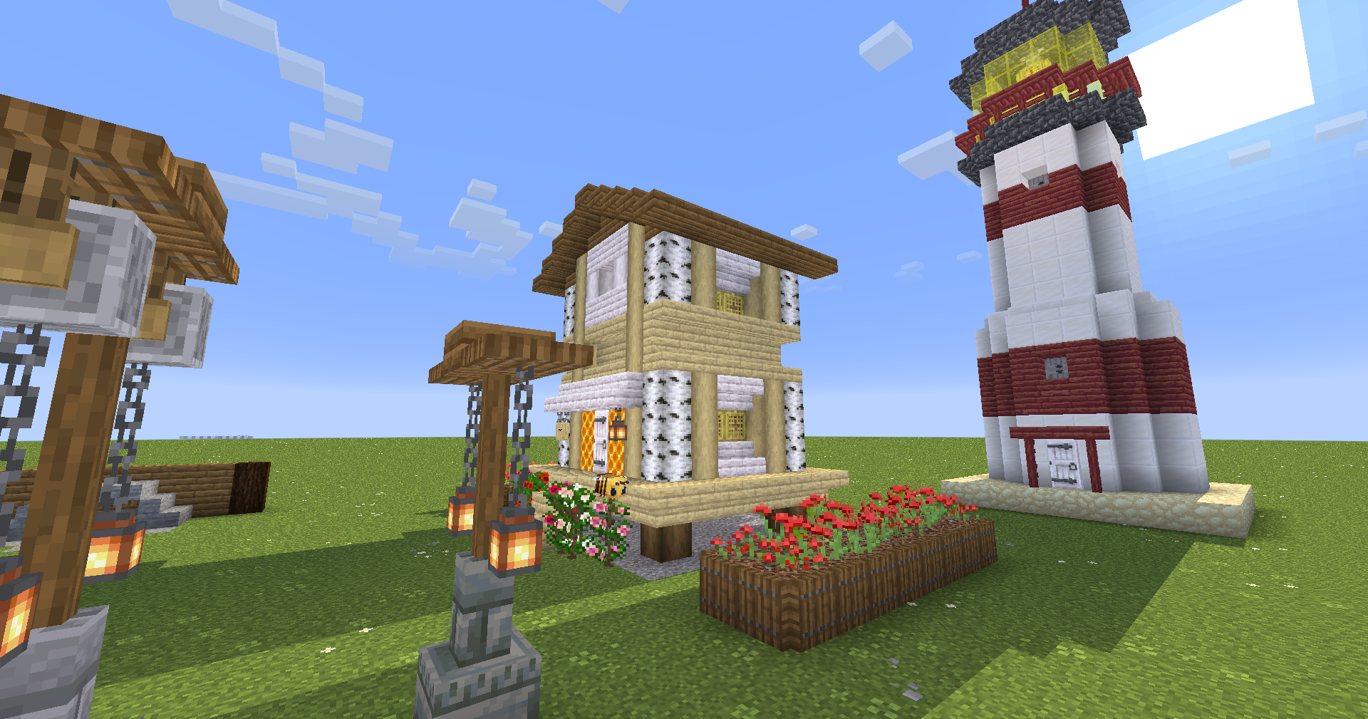 Some creative world mockup builds demonstrate potential projects including a lighthouse and bee farm.