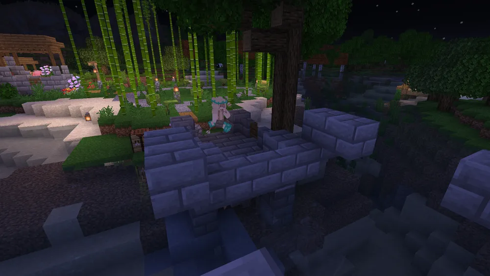 The initial access bridge to the park was also rebuilt to allow boat travel, matching the design of the previously-constructed canal bridge. The park’s pond was also re-developed for axolotl habitation.