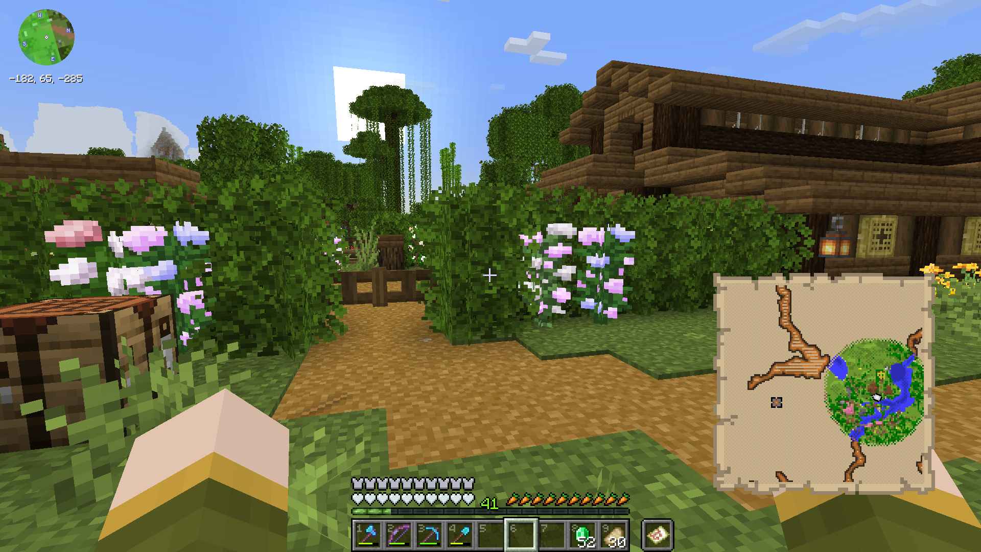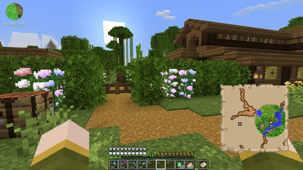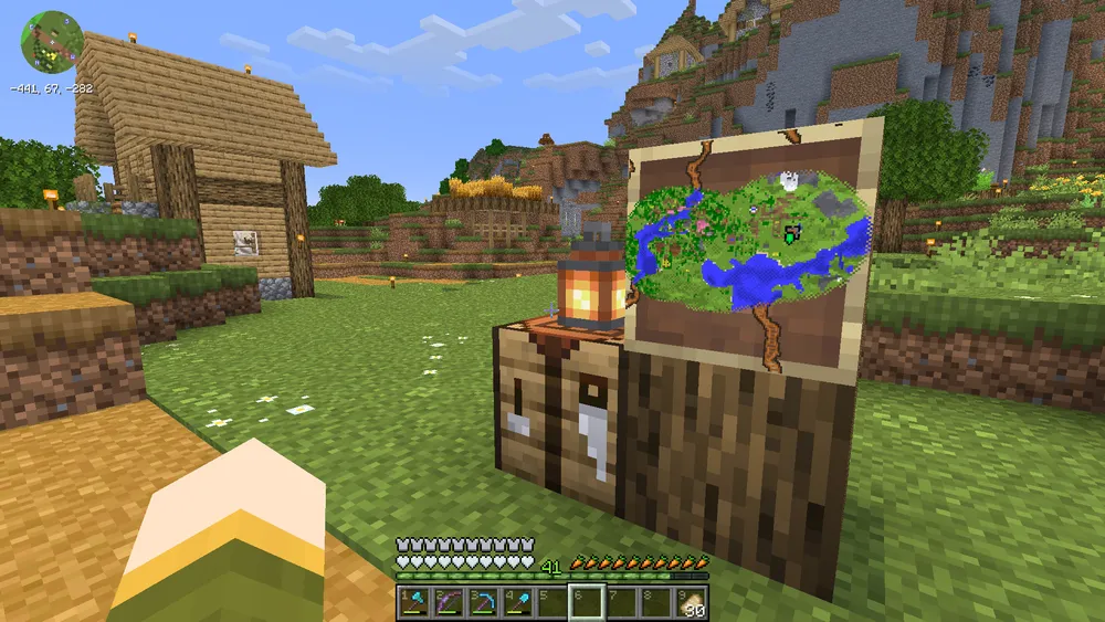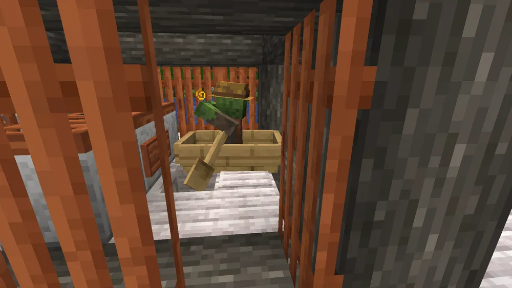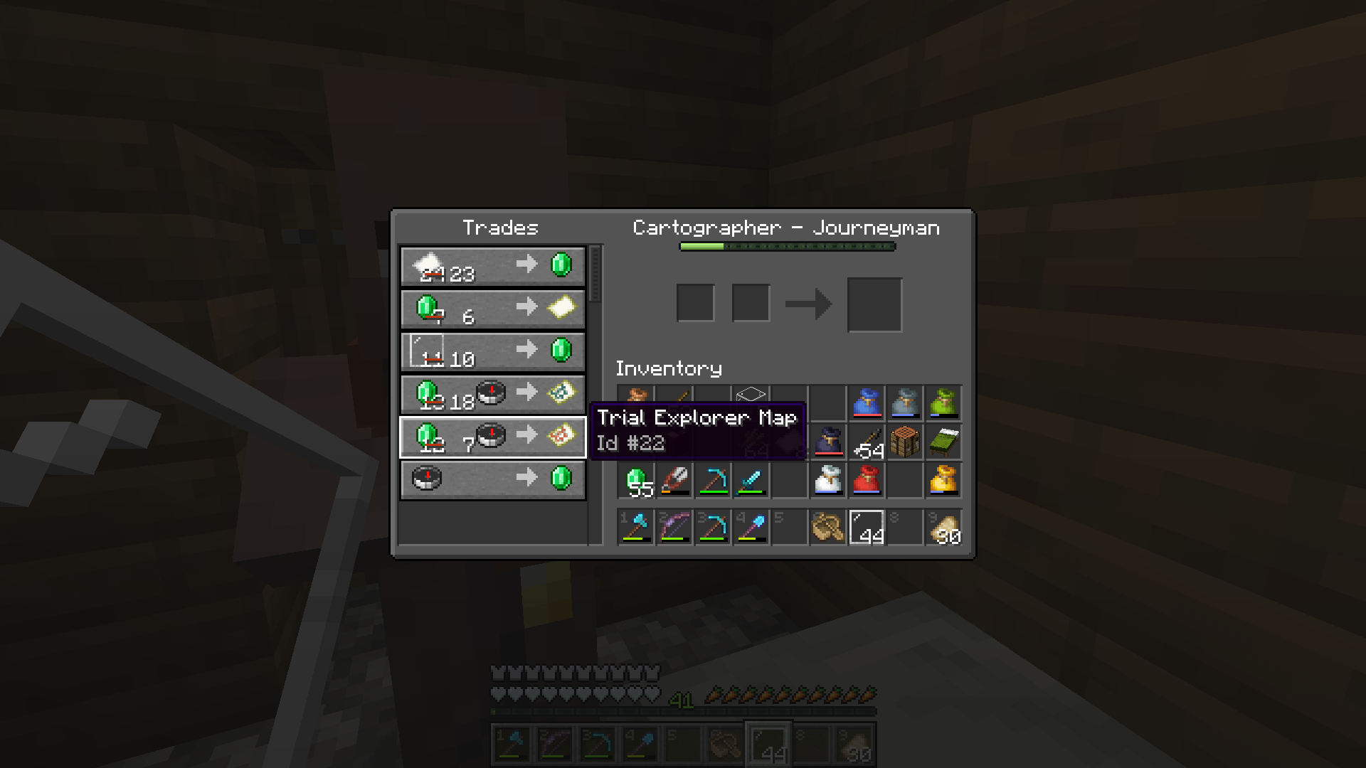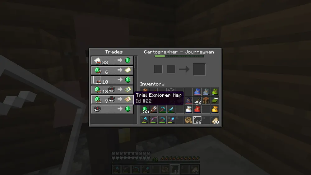 A sought-after trial chamber map was finally obtained via a cartographer at the villager trade market. The dungeon is located beneath our early settlement in Pepperton.