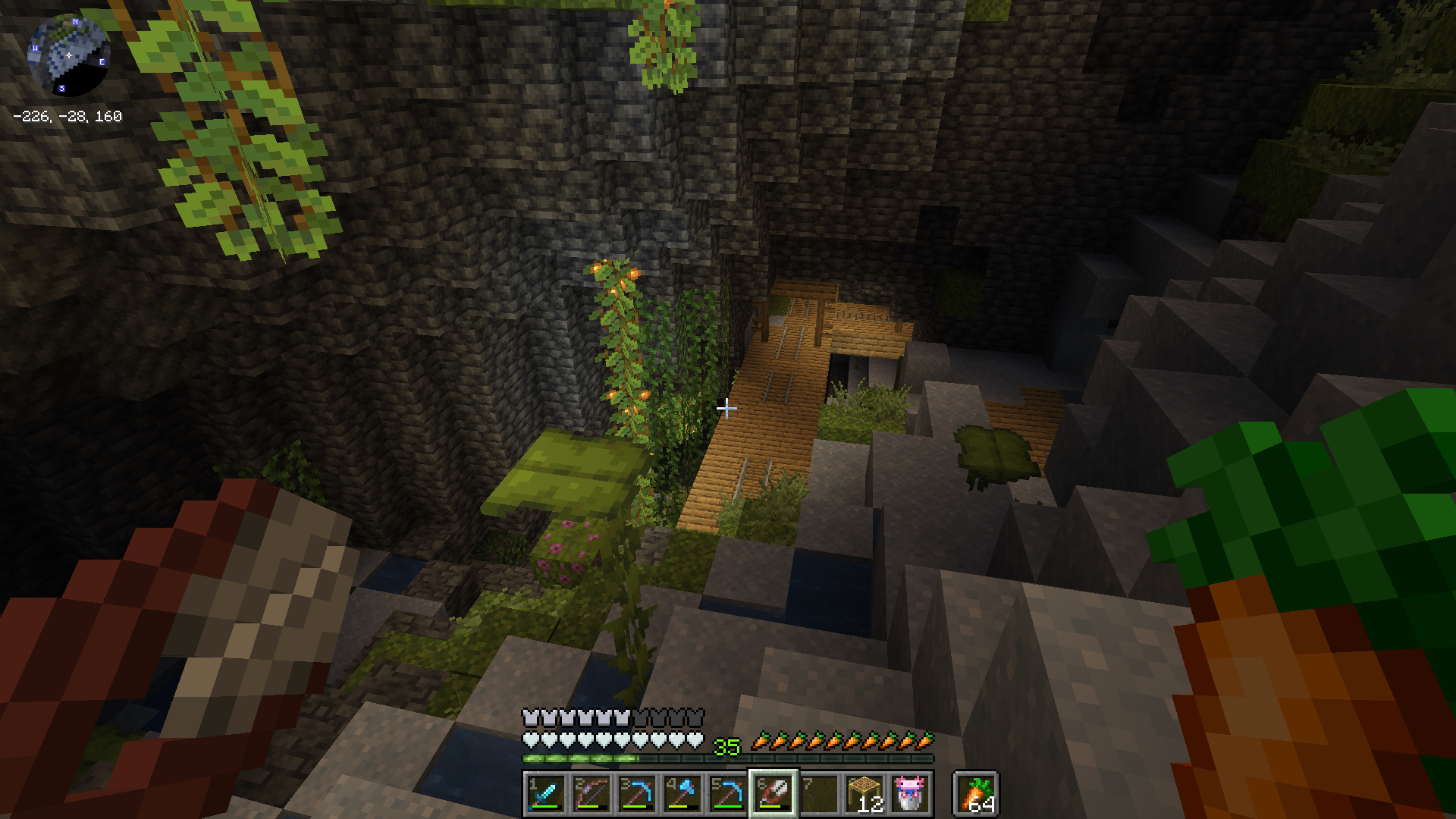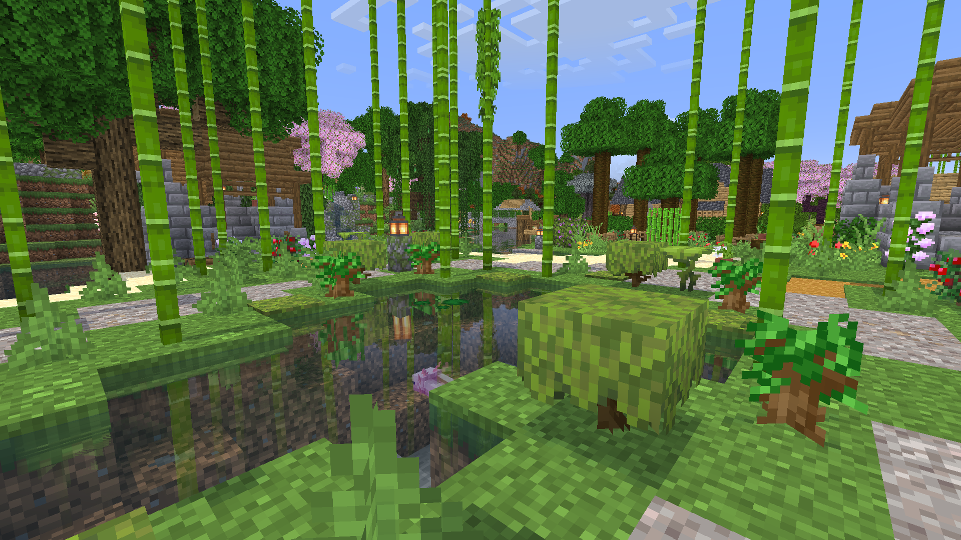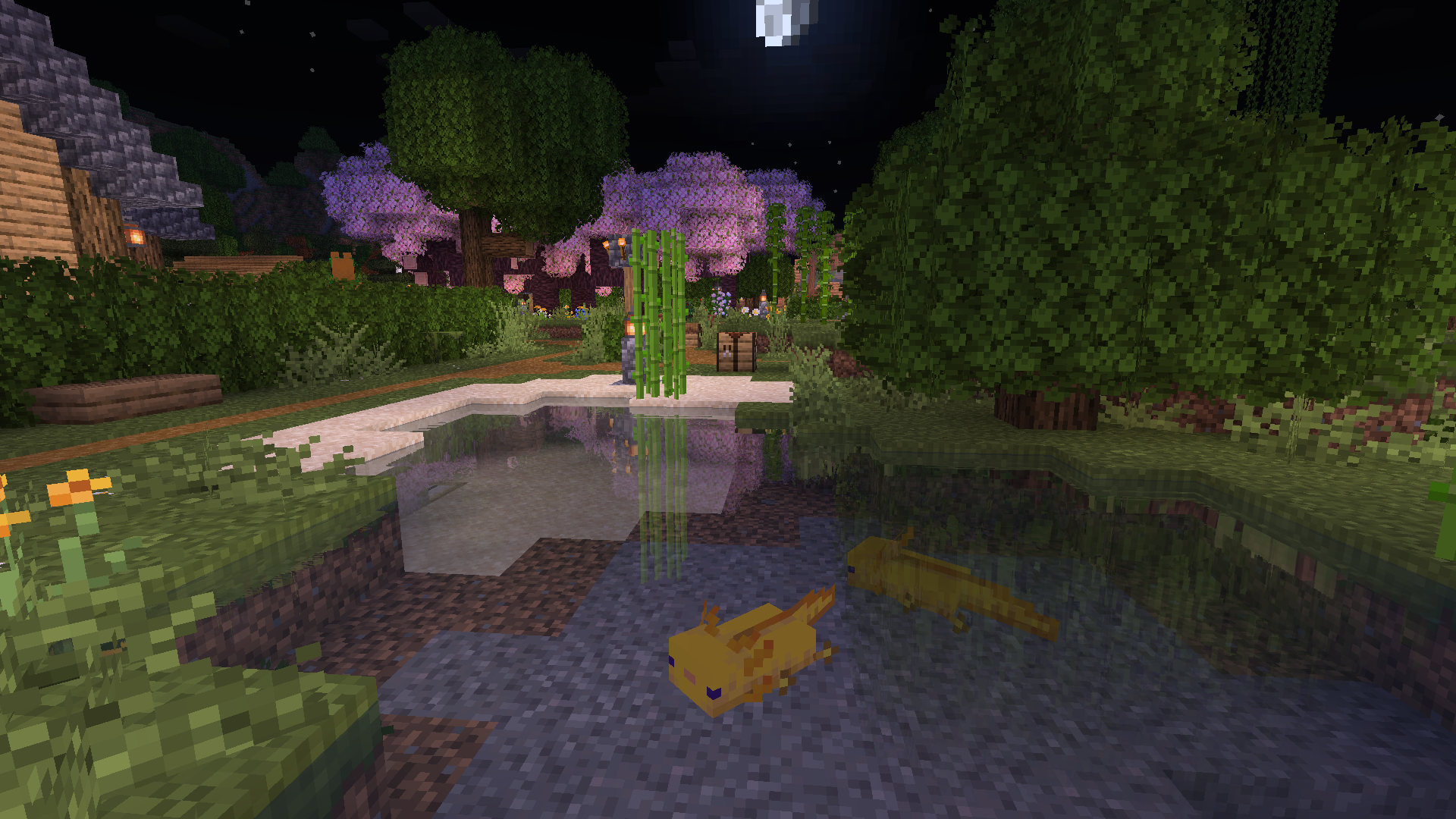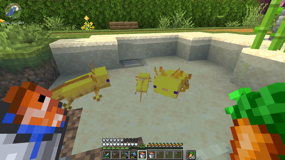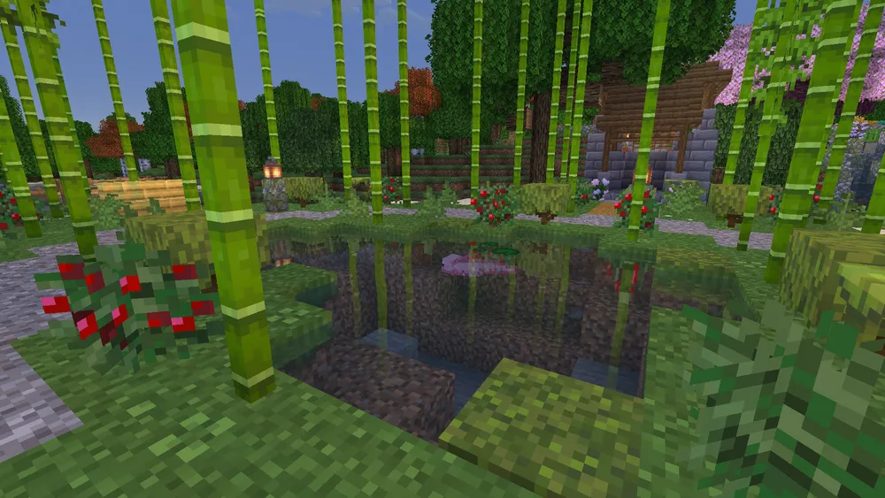More axolotls were relocated from the underground lush cave to a small pond at Turtle Grove, where they are sustained by tropical fish obtained from wandering merchants.