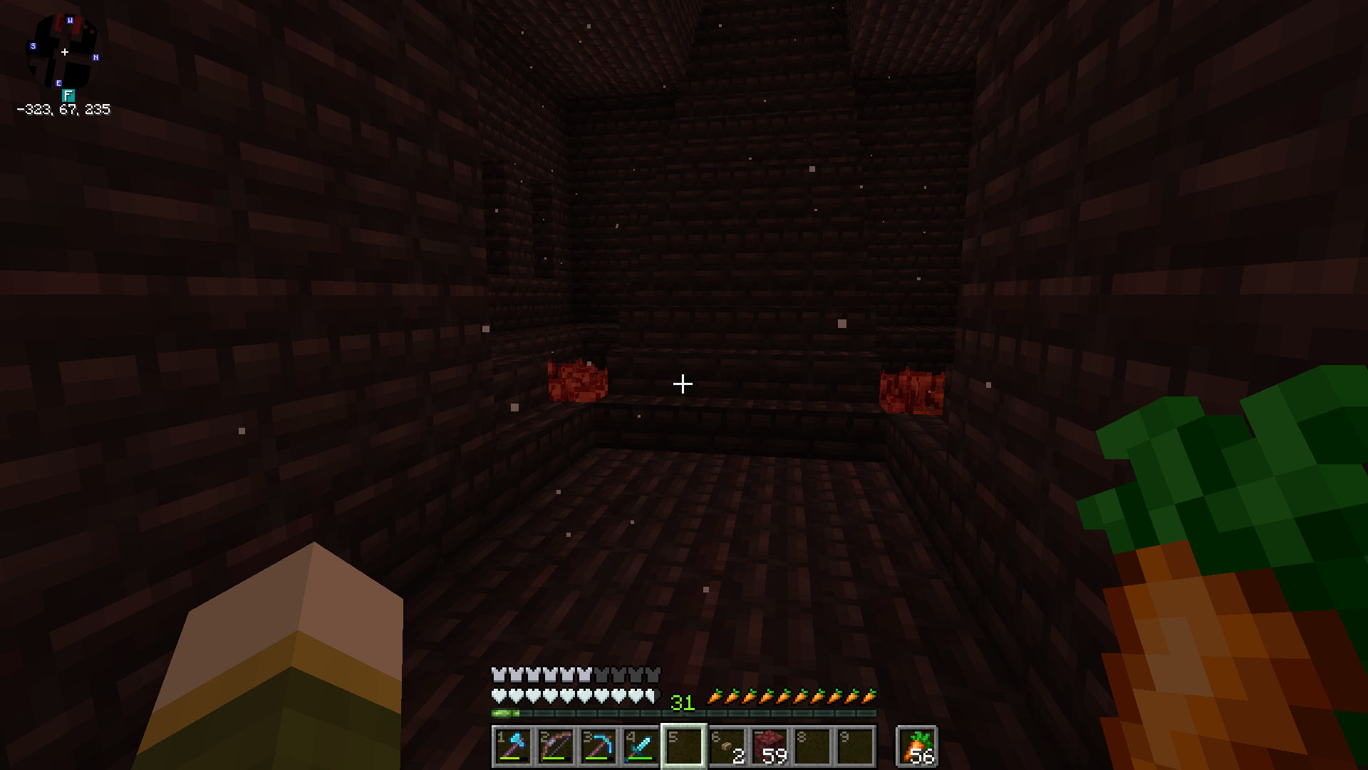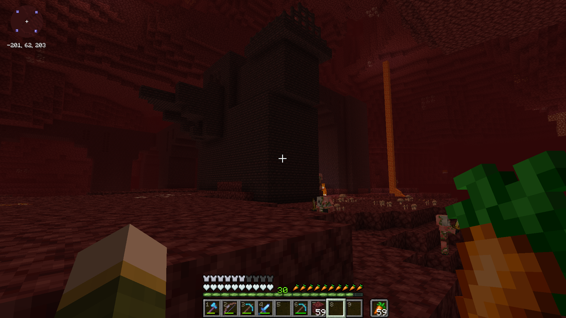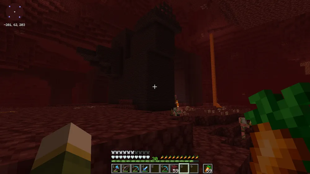 A short trip through the nether yielded our first nether wart plants taken from a newly-discovered stronghold as well as our first wither skull.