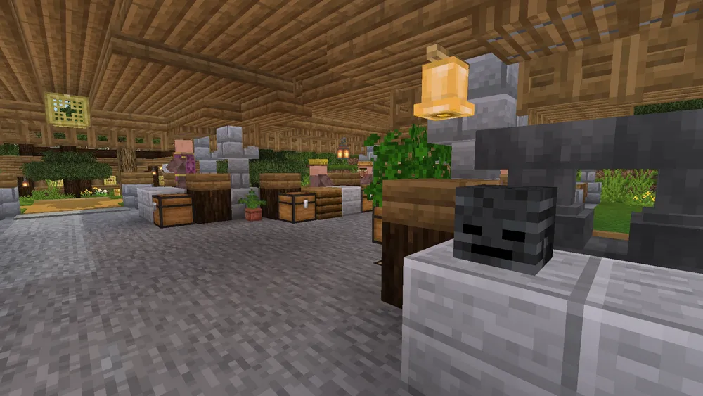 Villagers raised at the inn can be employed at the adjacent trading market, where a supply of iron obtained from the grinder in Pepperton yields a steady income of emeralds and other useful items.