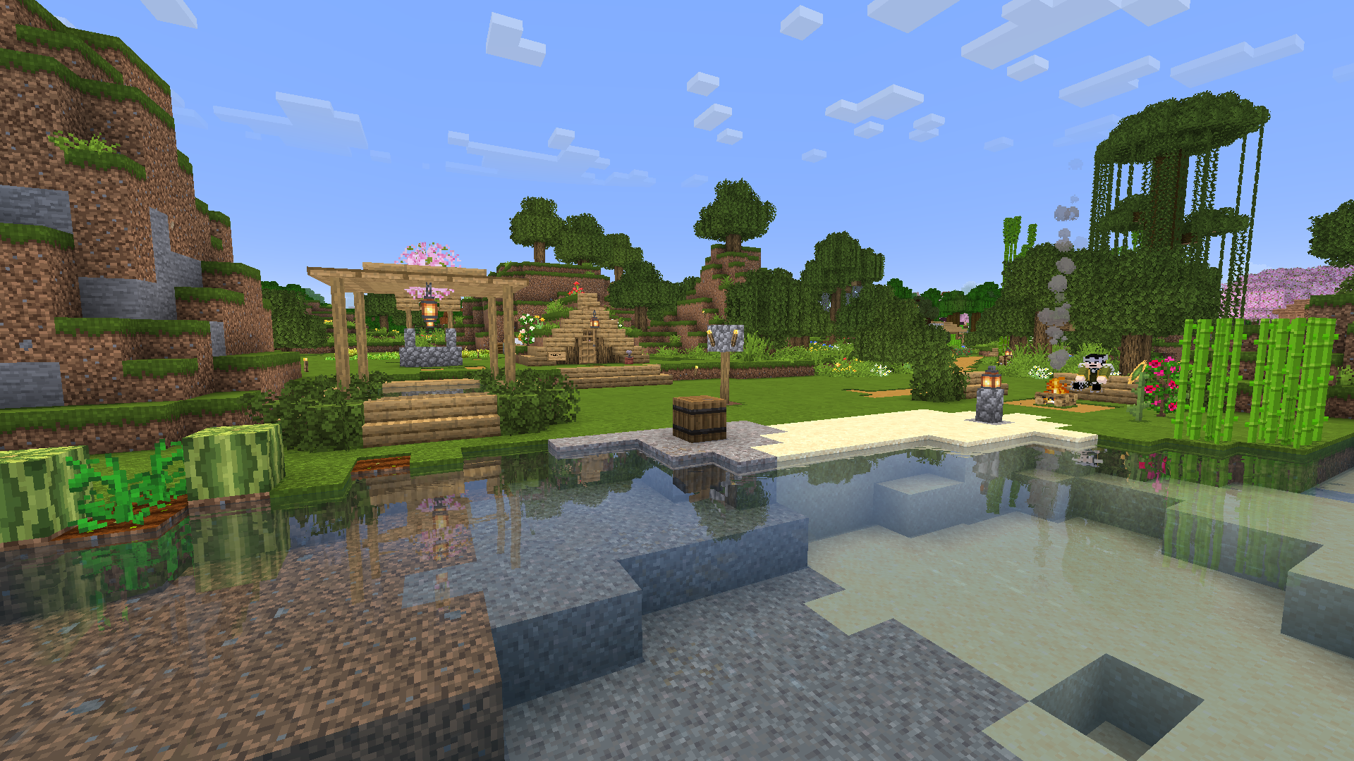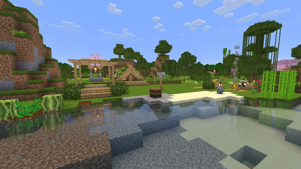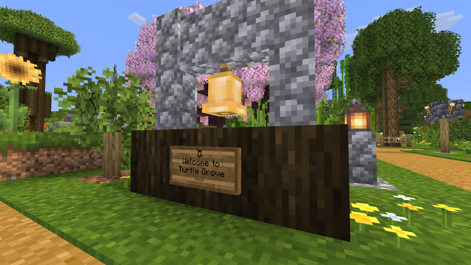 This month we’ve welcomed a new member to the group, created a hub for a growing villager population and trading economy, and developed some more local farms and work areas for expanding the Turtle Grove township. The locations of an end stronghold and trial dungeon were discovered, and the Spring to Life update also brings a few new decorative details to the world.
